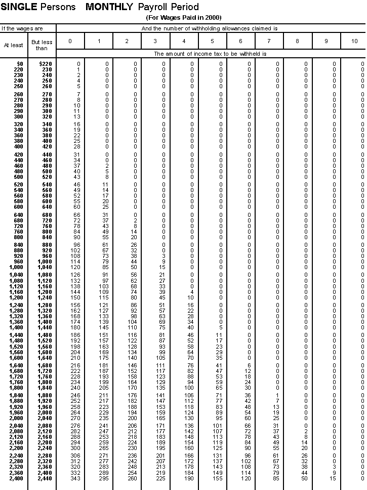 (Including 2001 Wage Withholding and Advance Earned Income Credit Payment Tables)