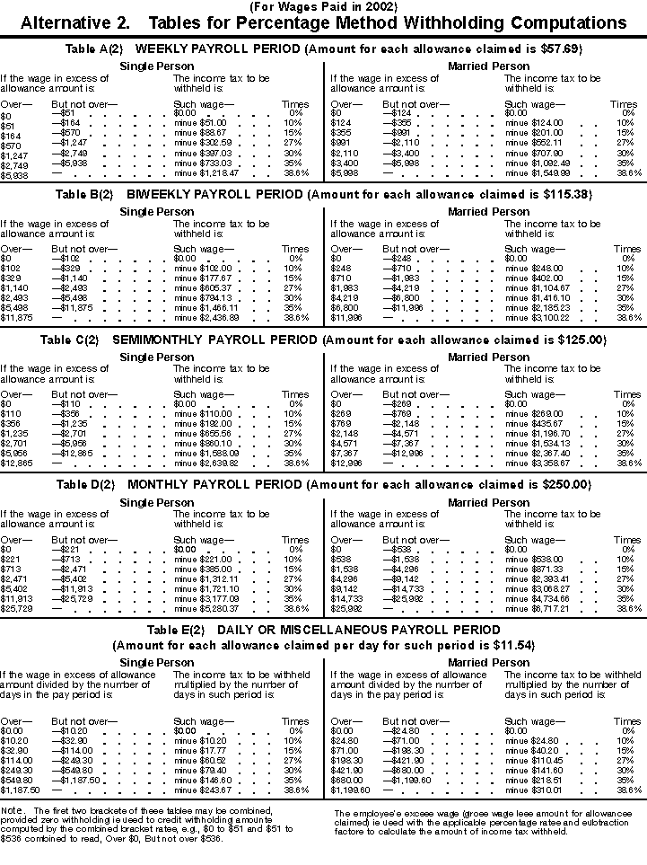 | Percentage (Pub. 15) |