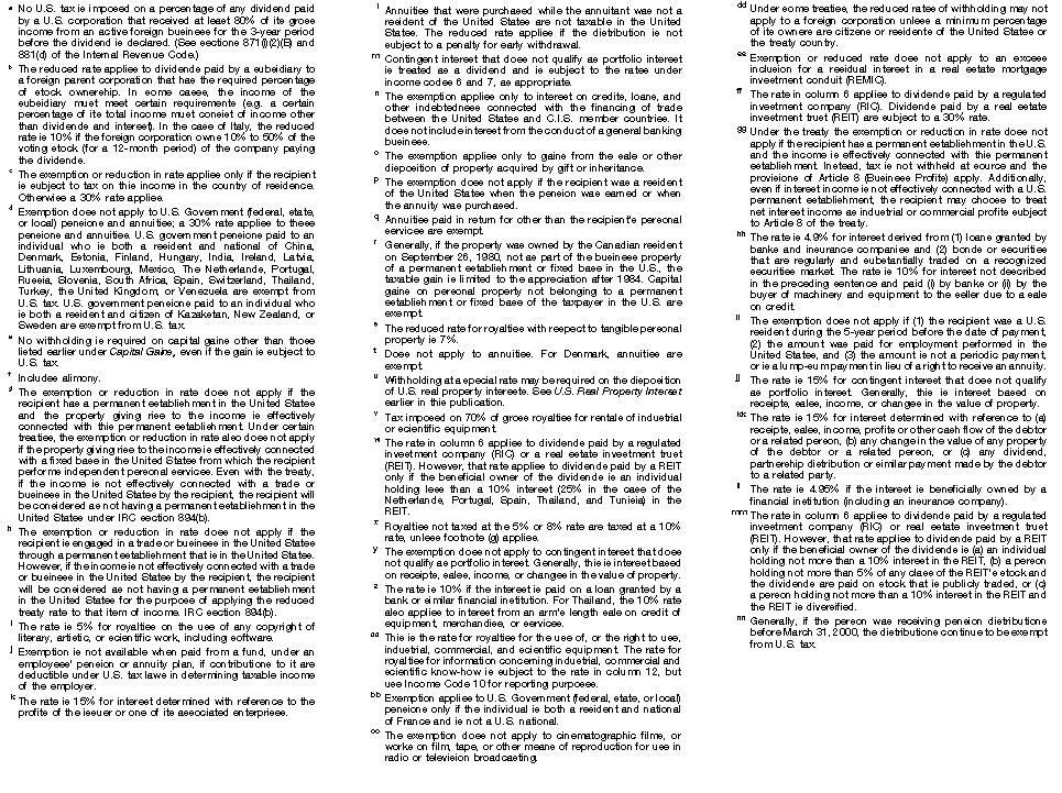 Caution: These tables are not meant to be a complete guide to all provisions of every income tax treaty. For detailed information, you must consult the provisions of the tax treaty that apply to the country of the nonresident alien to whom you are making payment.