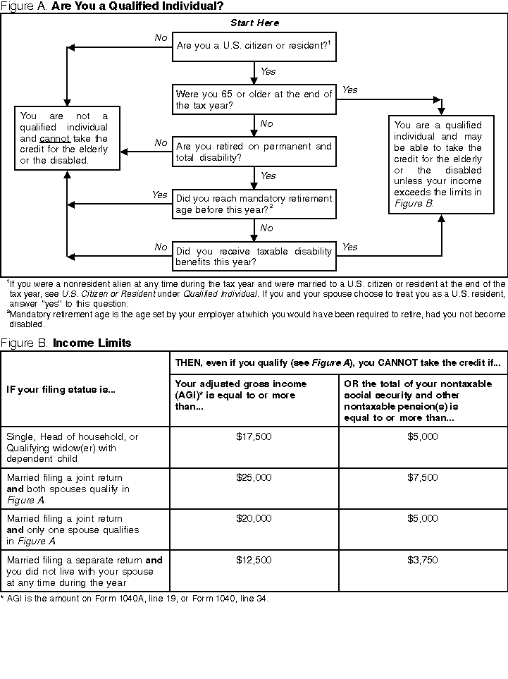 Figure A and BFigures A and B, shown later, can be used as guides to see if you qualify. Use Figure A first to see if you are a qualified individual. If you are, go to Figure B to make sure your income is not too high to take the credit.