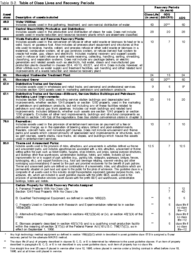 The Table of Class Lives and Recovery Periods has two