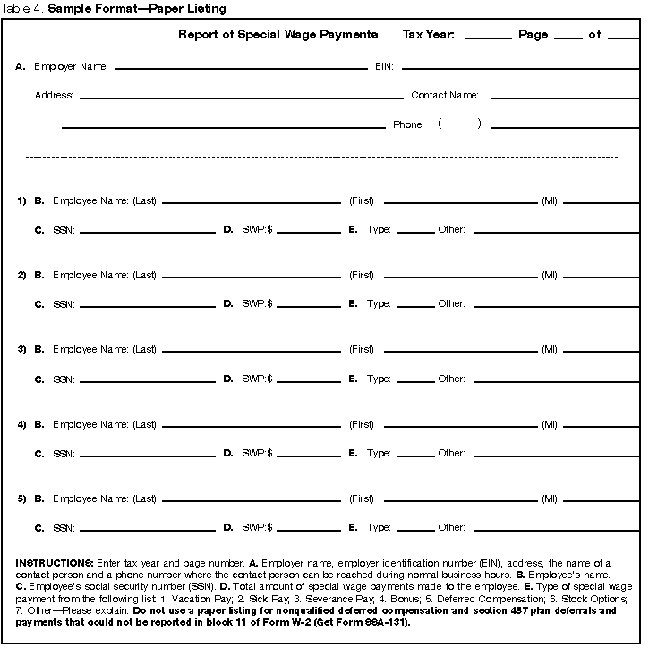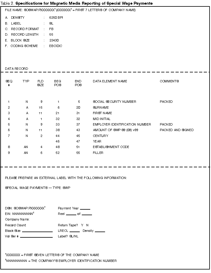 Table 2. Specifications for Magnetic Media Reporting of Special Wage Payments