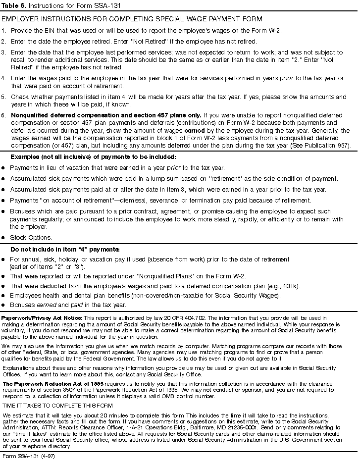 not be reported in box 11 of Form W-2. Form SSA-131 and