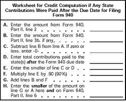 This is the credit allowable for your payments to state unemployment funds. If you made no late state contributions, enter the smaller of the