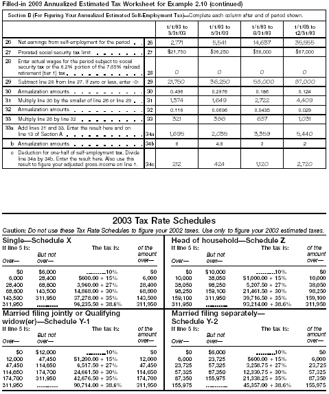 (Worksheet 2.10) in this chapter. Their filled-in worksheet follows their filled-in 2003 Estimated Tax Worksheet at the end of